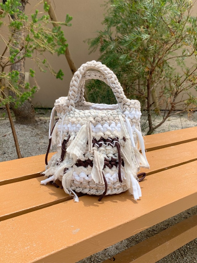 インド綿の廃棄素材を使って製作いたしました。 編み込む事で強度も増し自立してくれるバックです。 【India bag】 素材:アップサイクル糸,インド綿、リサイクル綿の糸 サイズ:one size (H:18cm W:17cm D:17cm) ※サイズおおよその長さになります。素材が伸び縮みする為、何も中に入れてない状態の長さです。 【お取り扱いについて】 アパレルの廃棄素材から鞄を製作する中で残ってしまう残布で作っておりますその為、製品のつなぎ目、太さや色、毛羽立ち、素材感などトレンドを活かしたデザインを60歳以上のメンバーで心を込めて作製しております。 【メンテナンスについて】 永くご愛用頂けますよう、汚れなど気になった場合は、 ネットに小さく入れてお洗濯していただけます。(色落ちがある場合もございますので、白い衣類は避けてください。) 【配送について】 決済完了より1週間以内に発送手続きさせて頂きます。 ヤマト運輸で発送させていただきます。ポスト投函となる為、購入確定前にご住所のご確認をお願い致します。 誤った住所でご登録された場合は、お早めにお問合せください。 (万一誤った住所宛にすでに発送した場合には、追跡番号にてお荷物の状況を確認させていただきます。) ”返品・交換について” 購入後の返品はいたしかねます。何かご相談等ございましたらお問合いせよりご連絡ください。